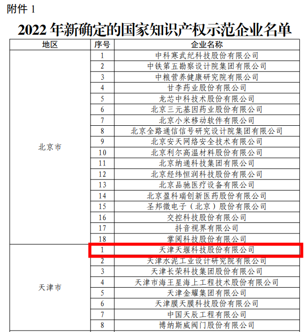 近日,國家知識產(chǎn)權(quán)局發(fā)布了新一批國家知識產(chǎn)權(quán)示范企業(yè)和優(yōu)勢企業(yè)名單,天津天堰科技股份有限公司成功被評為新一批國家知識產(chǎn)權(quán)示范企業(yè),這是自天堰被評為全國企事業(yè)知識產(chǎn)權(quán)試點(diǎn)單位、全國知識產(chǎn)權(quán)優(yōu)勢企業(yè)、全國版權(quán)示范單位等稱號以來,再次獲得國家級榮譽(yù)。