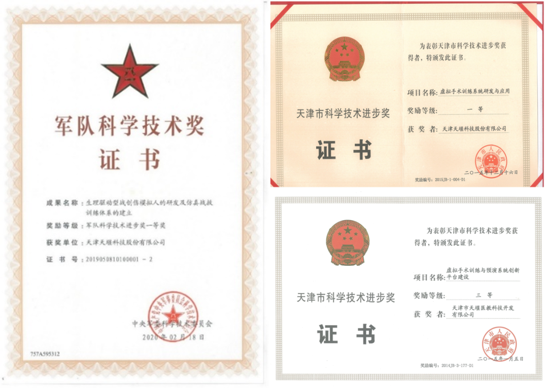 到目前為止,天堰科技已申請領(lǐng)域內(nèi)相關(guān)知識產(chǎn)權(quán)1263項(xiàng),其中發(fā)明專利164項(xiàng),軟件著作權(quán)203項(xiàng);注冊商標(biāo)百余項(xiàng),并被評為天津市著名商標(biāo);多項(xiàng)產(chǎn)品被錄入國家自主創(chuàng)新產(chǎn)品名錄;急危重癥救治仿真平臺、智能化戰(zhàn)創(chuàng)傷模擬訓(xùn)練系統(tǒng)等產(chǎn)品多次獲得省部級科技進(jìn)步一等獎、三等獎,相關(guān)前沿技術(shù)達(dá)到國際領(lǐng)先水平,打破國際壟斷,有效實(shí)現(xiàn)了進(jìn)口產(chǎn)品替代,成為國內(nèi)醫(yī)學(xué)模擬教學(xué)行業(yè)的名牌企業(yè),為國內(nèi)醫(yī)學(xué)模擬教學(xué)行業(yè)發(fā)展做出突出貢獻(xiàn)。同時,天堰科技積極開拓國際市場,多項(xiàng)產(chǎn)品獲得CE歐洲產(chǎn)品認(rèn)證,實(shí)現(xiàn)了公司產(chǎn)品進(jìn)入國際市場,打造世界一流的產(chǎn)品體系。